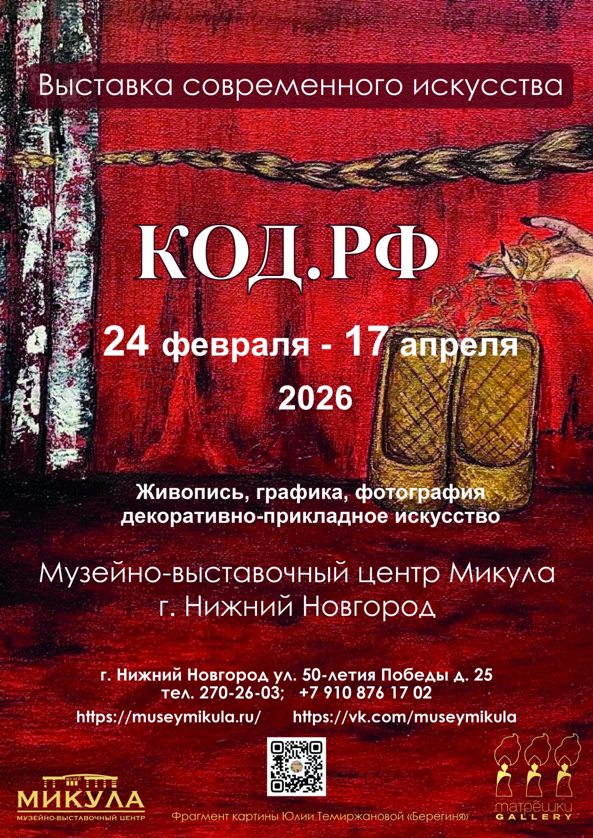 Идея выставки «Код.РФ» состоит в осмыслении того, как культурная память, символы, мифология и современная реальность отражаются в искусстве сегодня, и предлагает зрителю посмотреть на традиционные художественные формы через призму современного визуального языка